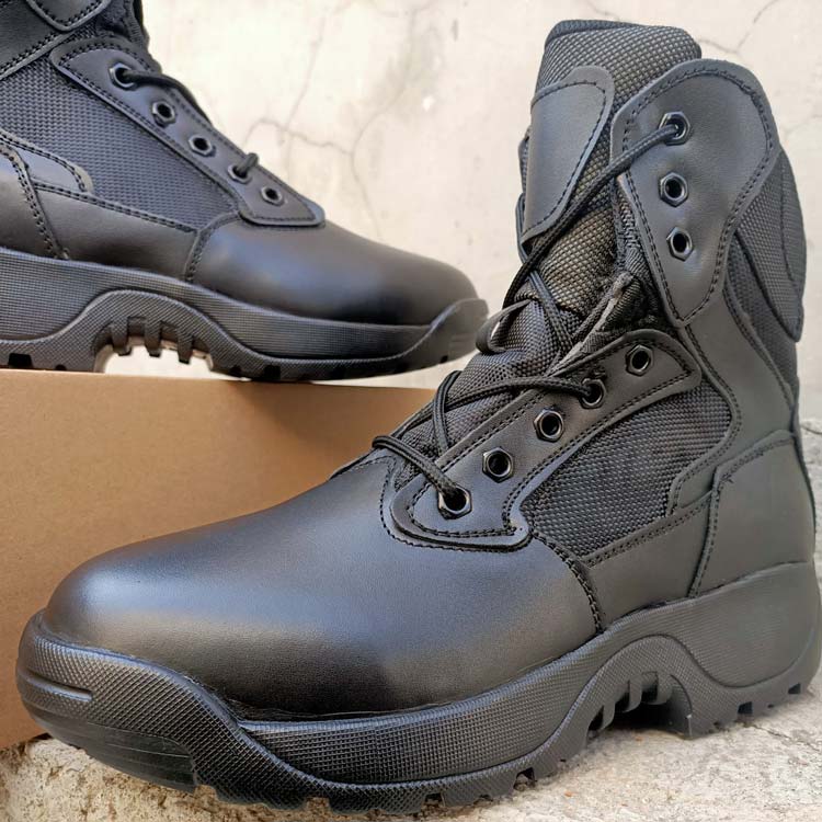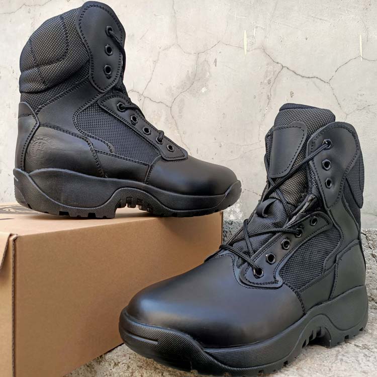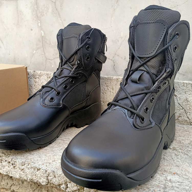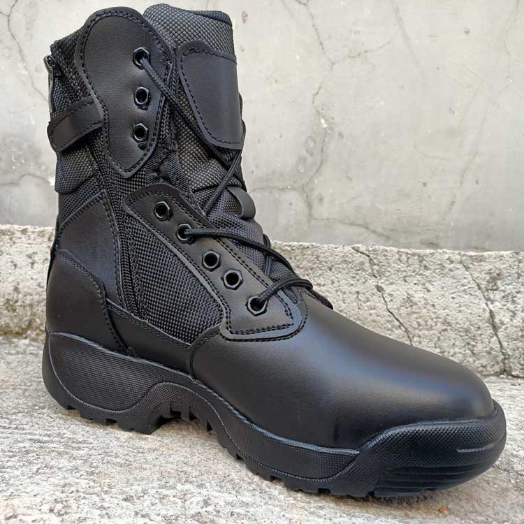 此鞋采用牛皮材质,胶粘工艺,警用橡胶大底,内侧拉链魔术贴快速穿脱,后跟特警钢印字。战靴是户外运动,登山娱乐,单位配发,最佳选择,全码现货,欢迎看样下单!