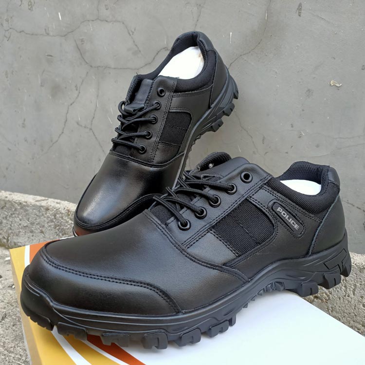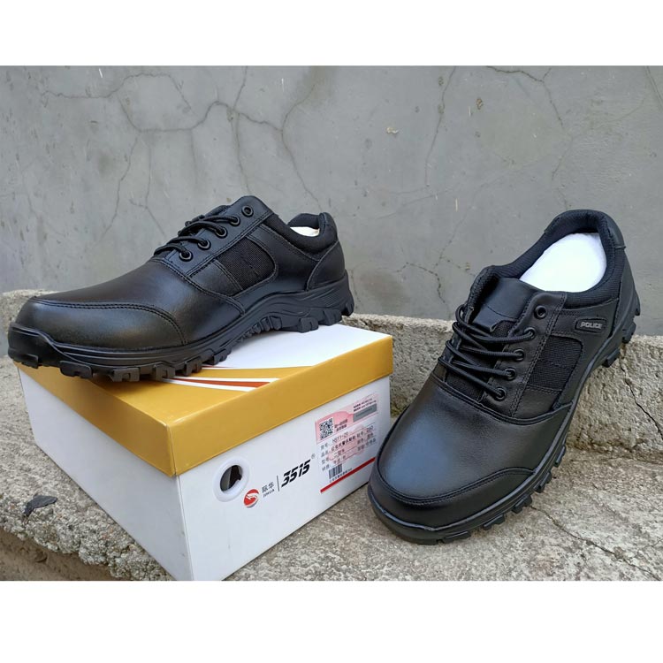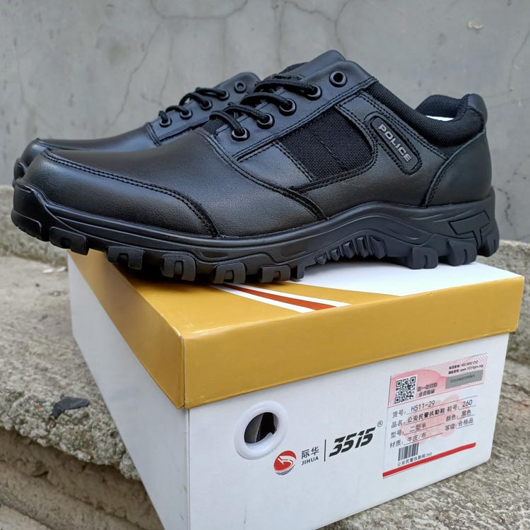 新式公安民警执勤鞋,货号:H511-29,头层牛皮,透气网布内里,耐磨橡胶底,38-46码(无45码),可当执勤皮鞋,也可作为运动跑鞋。 H511-29