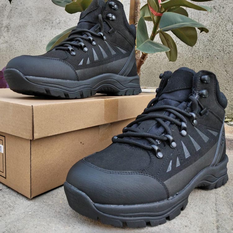 TPU+反绒皮拼接,抗踢防撞荔枝纹超纤,一体防风沙鞋舌,羊毛内里含棉内垫,鞋底为EVA发泡+橡胶,防滑耐磨减震。