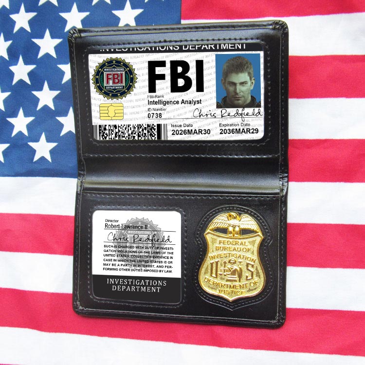 FBI金属警徽证件夹+PVC胸卡+金属FBI徽章 全皮衬垫 三件套