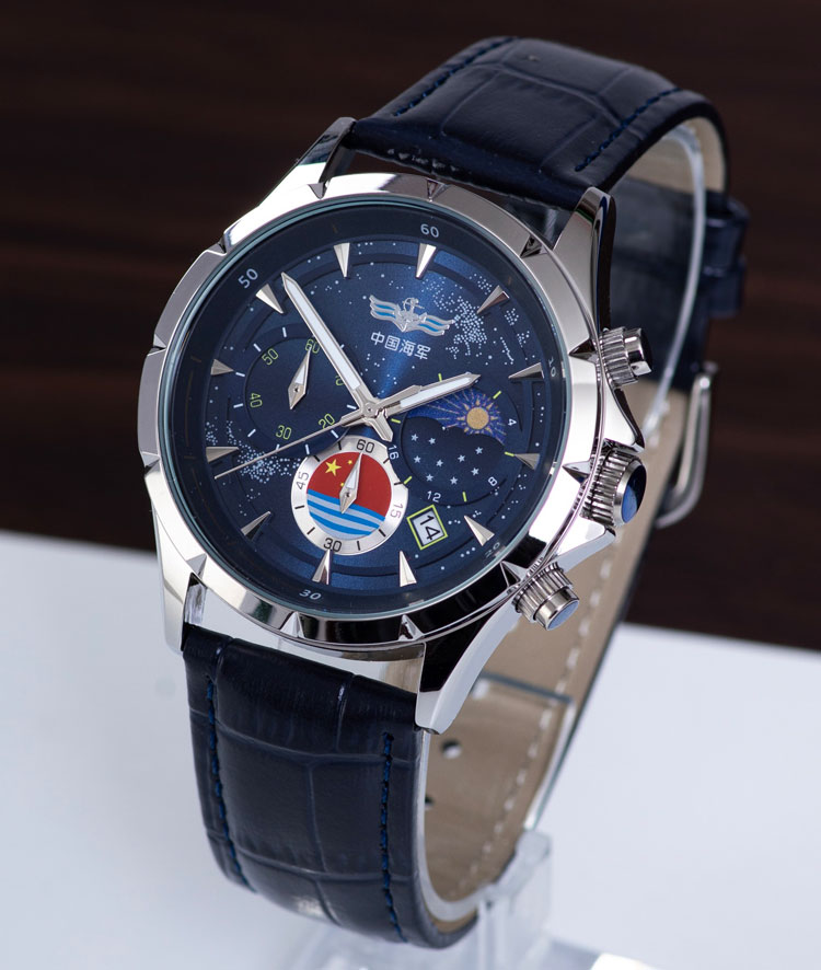 多功能计时单历机芯商务男表 多功能石英表 时尚手表中国警表J21