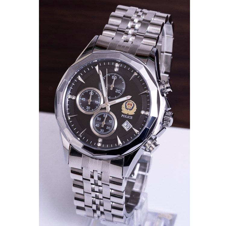 男士黑色警用石英表 0904黑警表盘时尚商务手表 皮带钢带可选