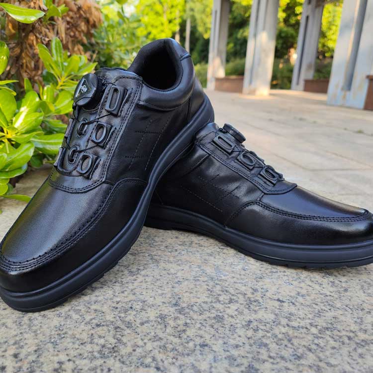 新款执勤皮鞋,自动扣3秒快速系带,货号:ZQ-01黑色,全牛皮鞋面,防滑橡胶鞋底,注塑工艺,拒绝开胶,38-46码,标准鞋码。