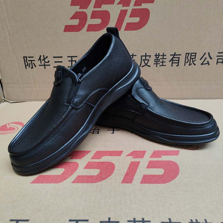 3515强人新款休闲皮鞋货号CX-11黑色全牛皮皮鞋橡胶软底耐磨防滑