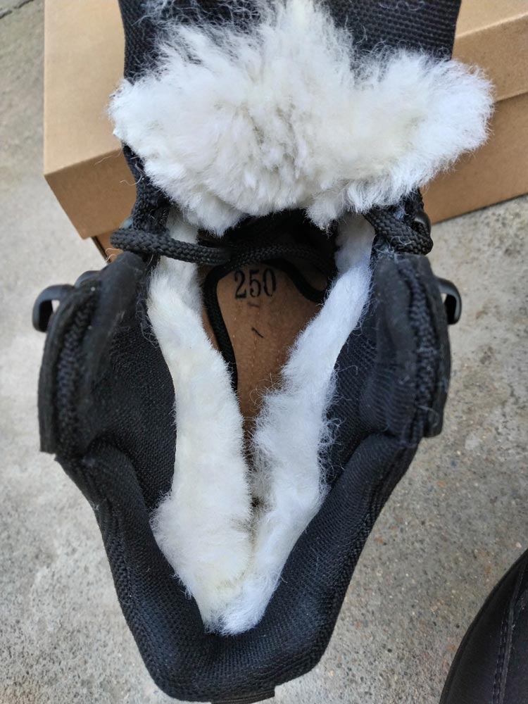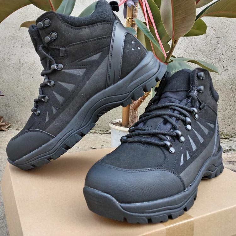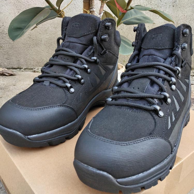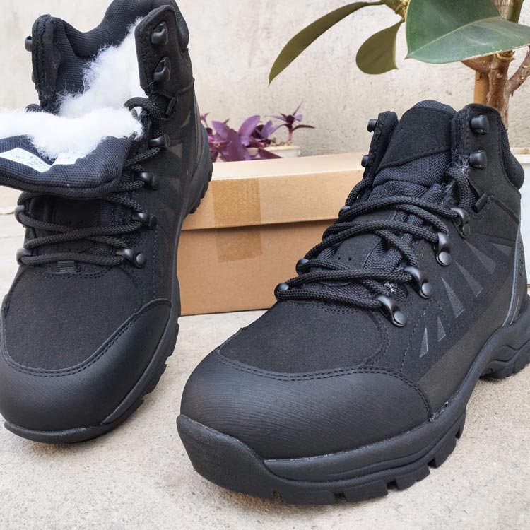 TPU+反绒皮拼接,抗踢防撞荔枝纹超纤,一体防风沙鞋舌,羊毛内里含棉内垫,鞋底为EVA发泡+橡胶,防滑耐磨减震。