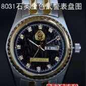 商祺正品军表 中国武警手表 武警表 8031石英 武警 金色钢带表