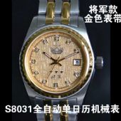 商祺正品军表 中国将军表 S8031全自动单日历机械表 男士金色表带